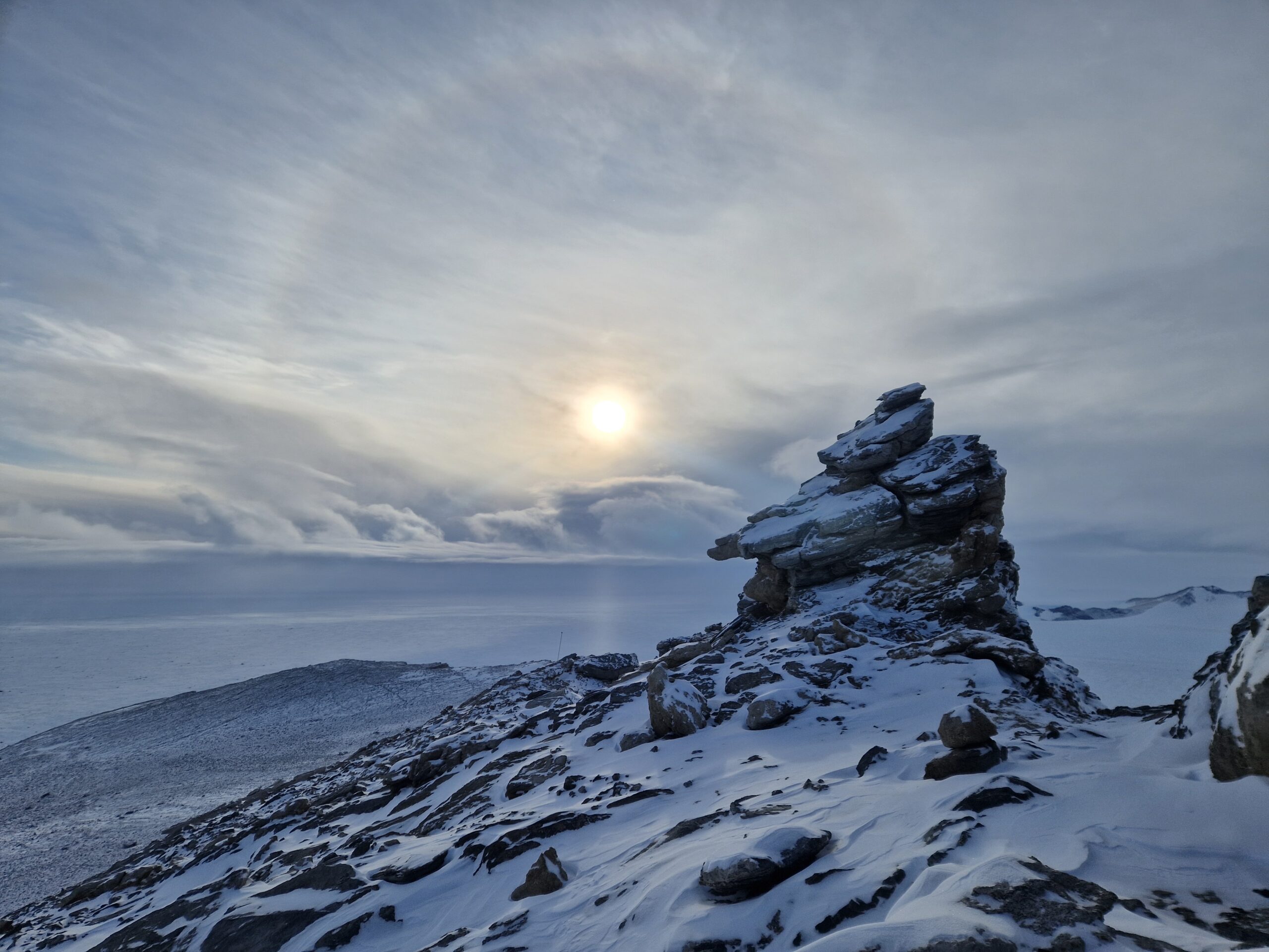 13. mars 2024: Is og snø så langt øyet kan se retning Sørishavet. Siste fly forlot stasjonen 7. mars 2024, og overvintringsteamet er isolert i 8 måneder